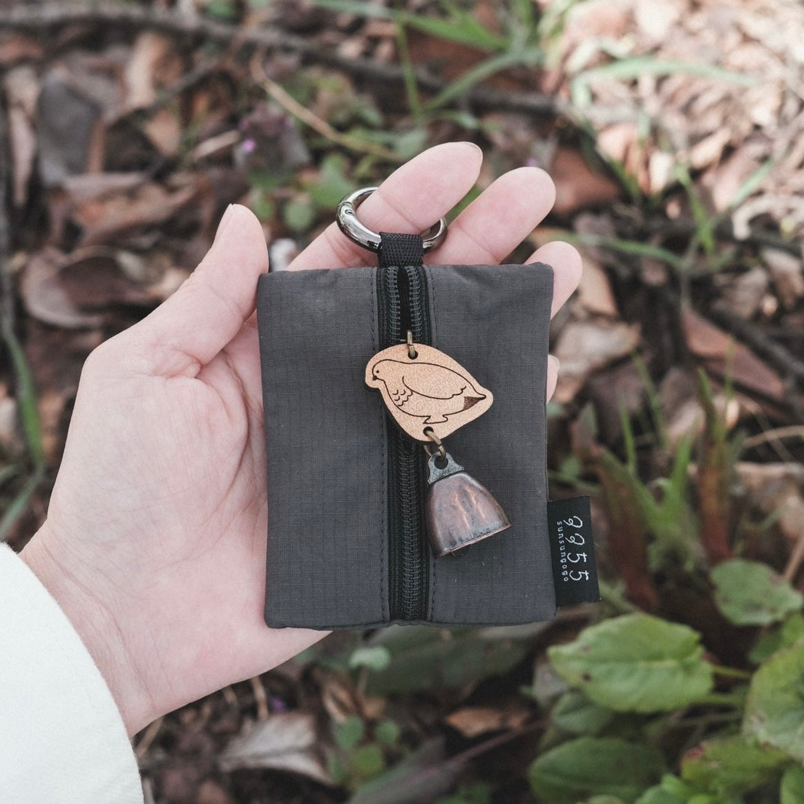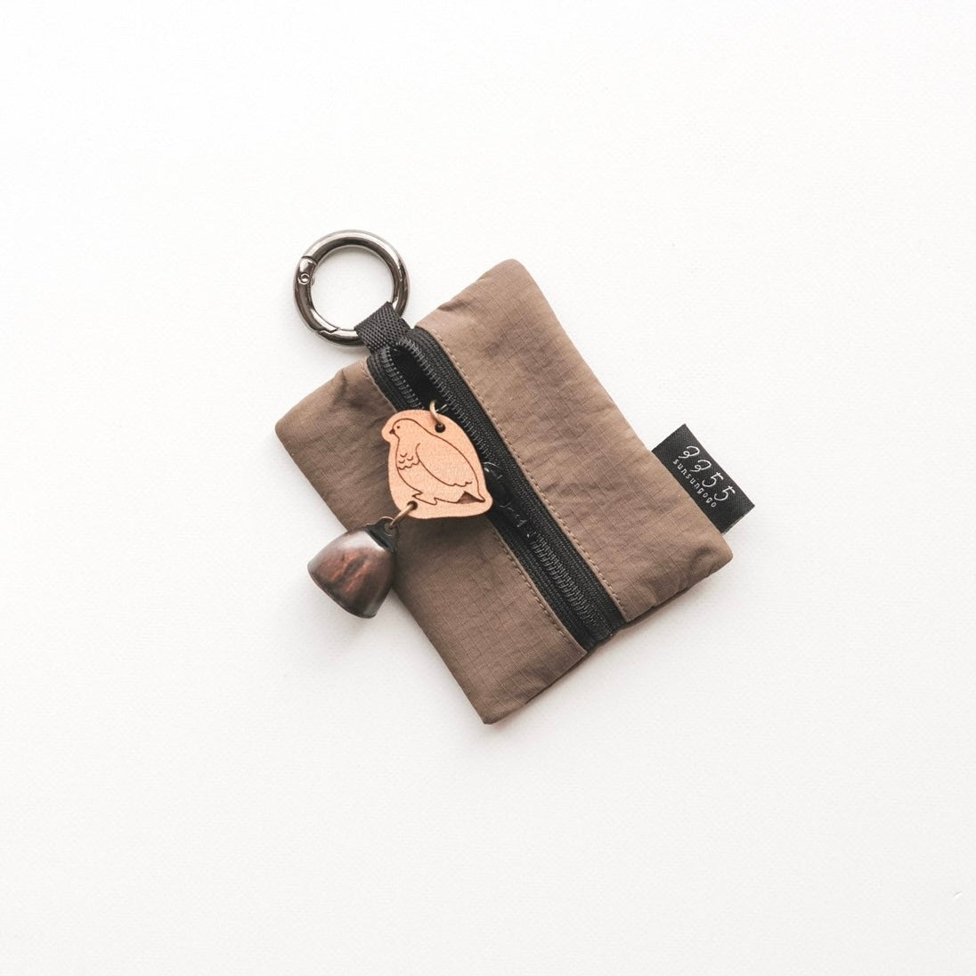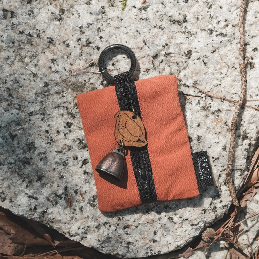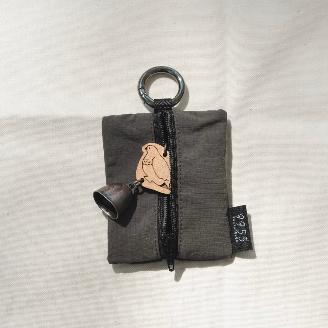 A charming mini pouch that comes with a bear bell keychain—featuring the gentle warmth of wood and a soft, cheerful ring.