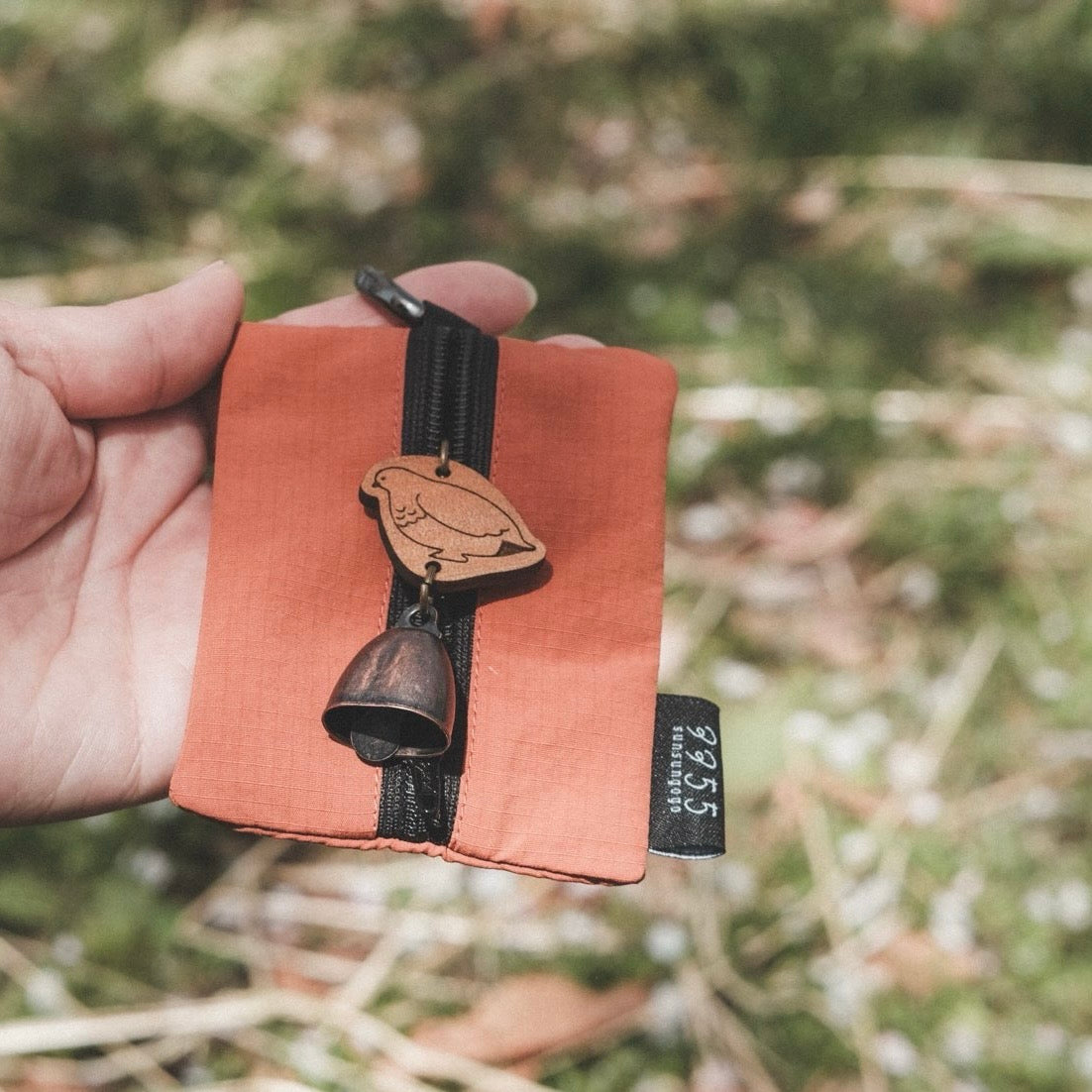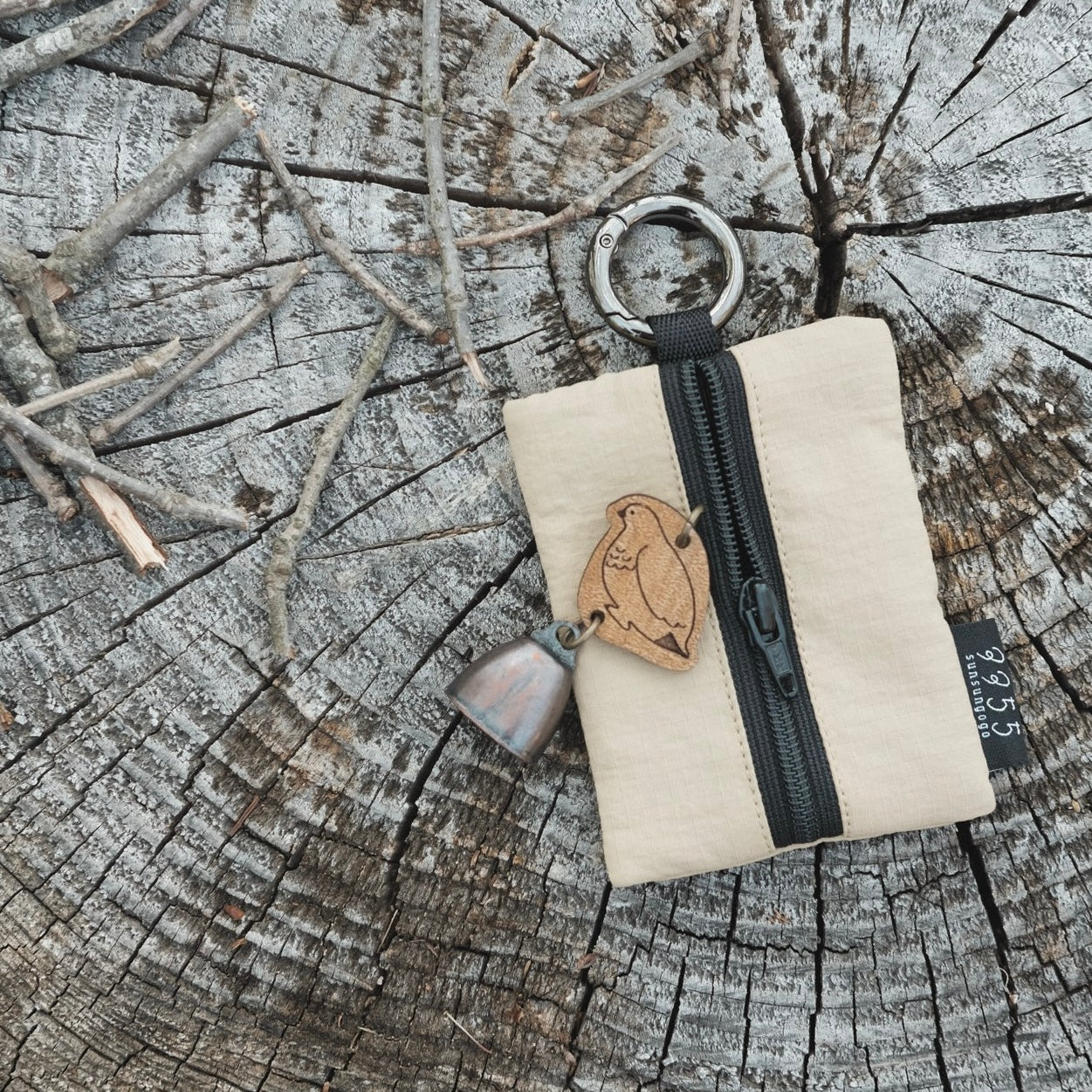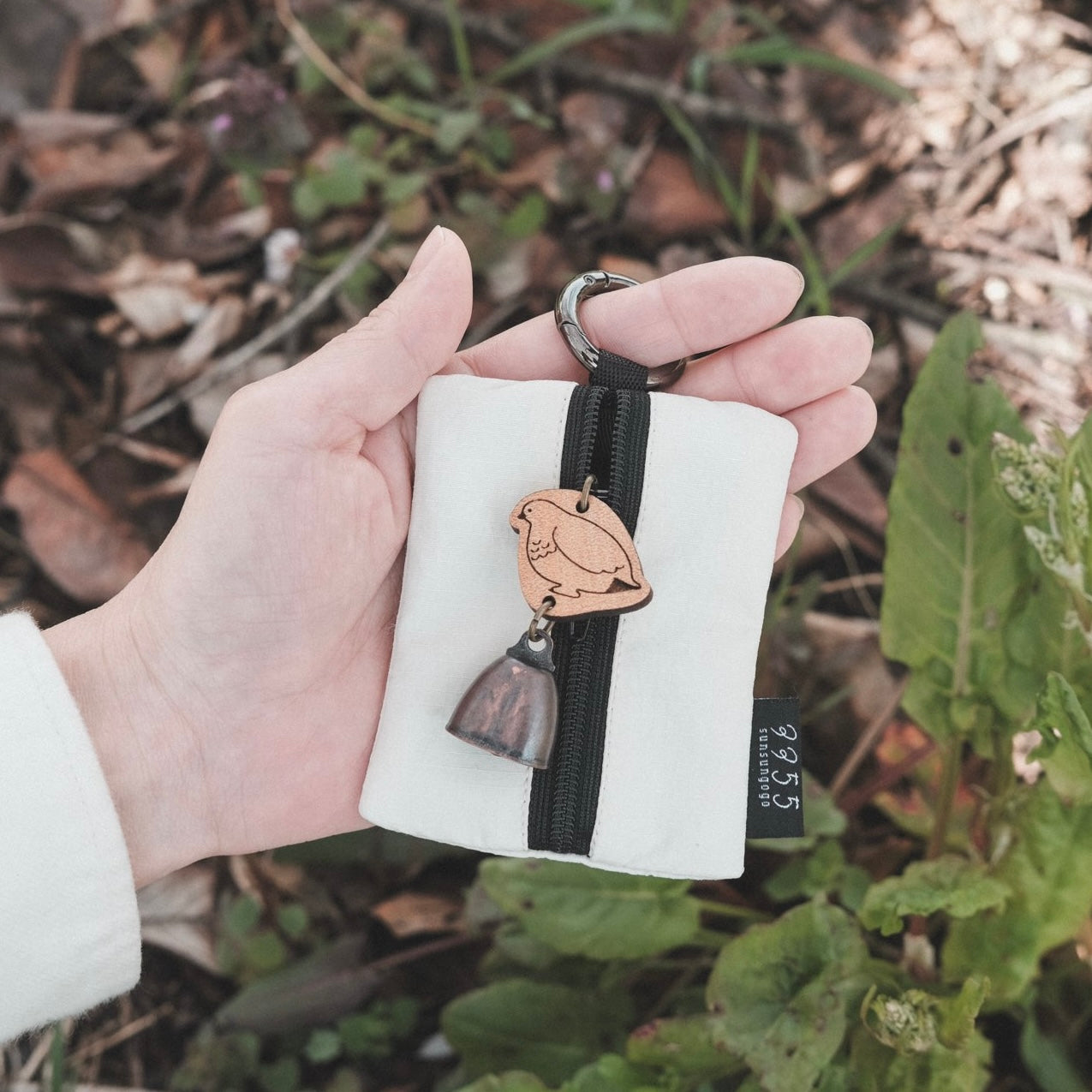 A charming mini pouch that comes with a bear bell keychain—featuring the gentle warmth of wood and a soft, cheerful ring.