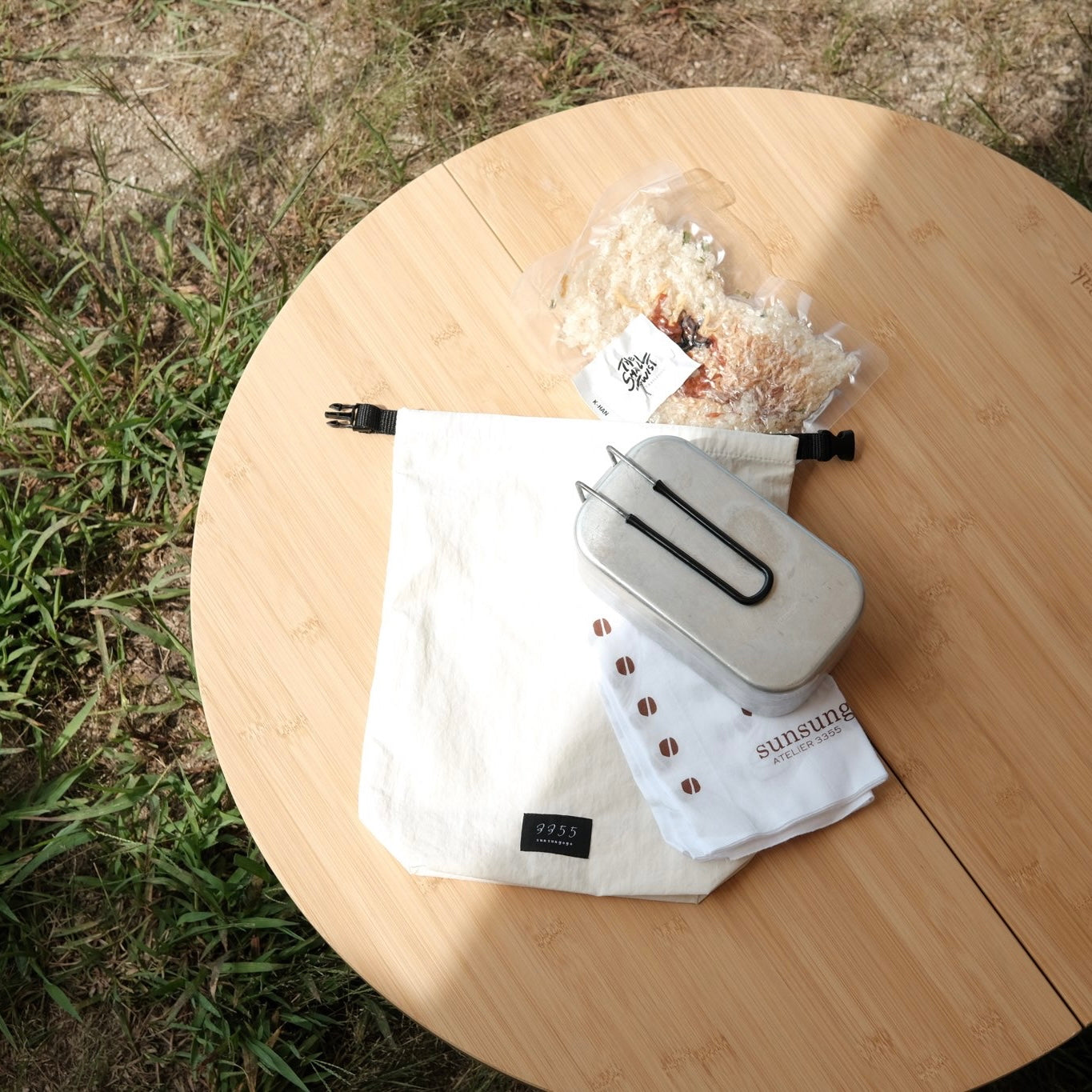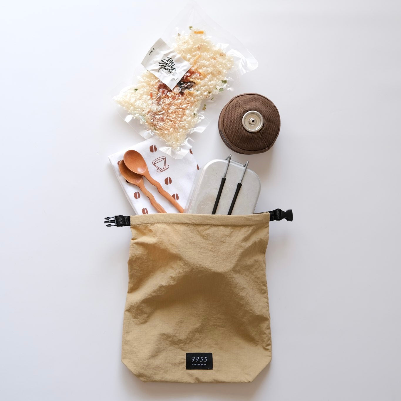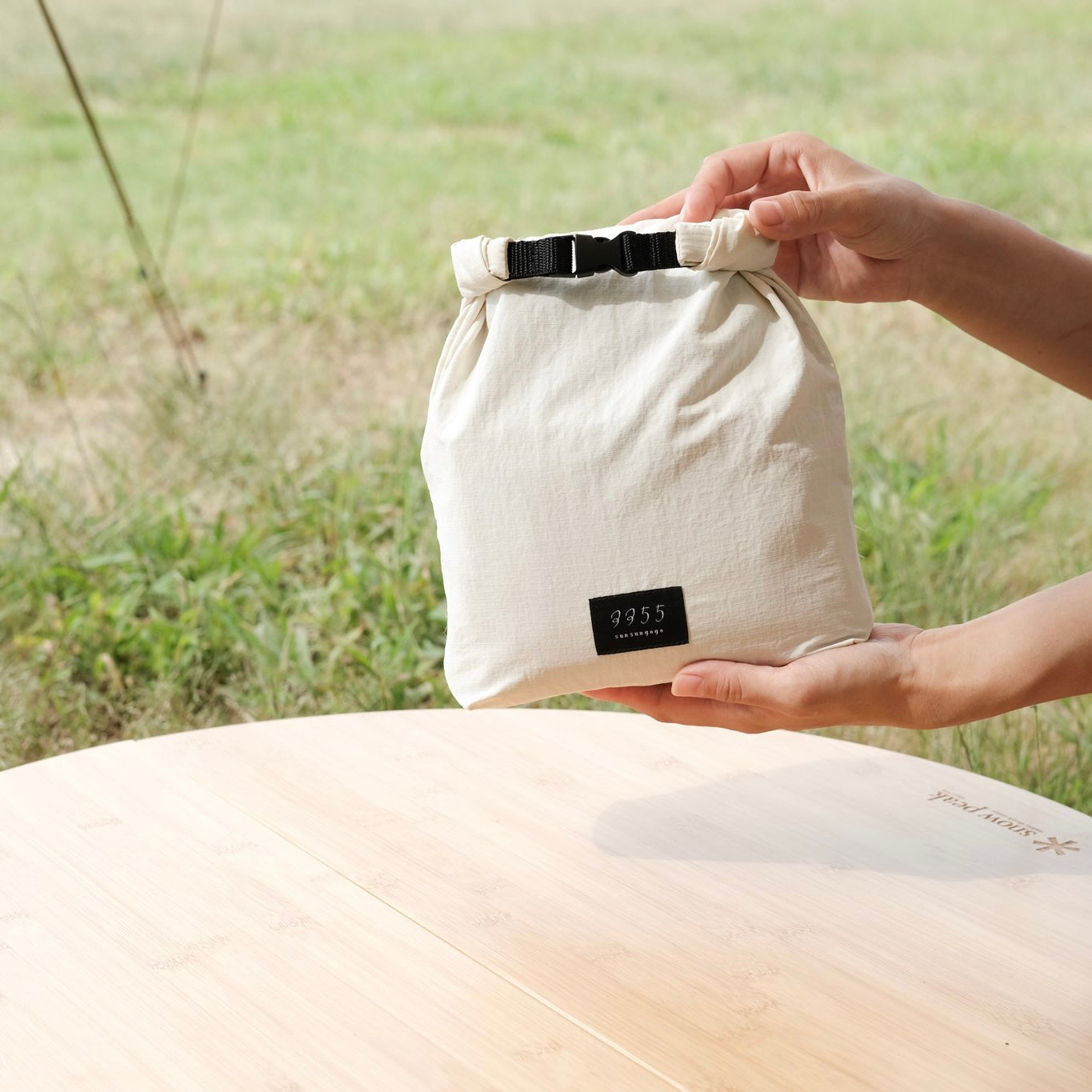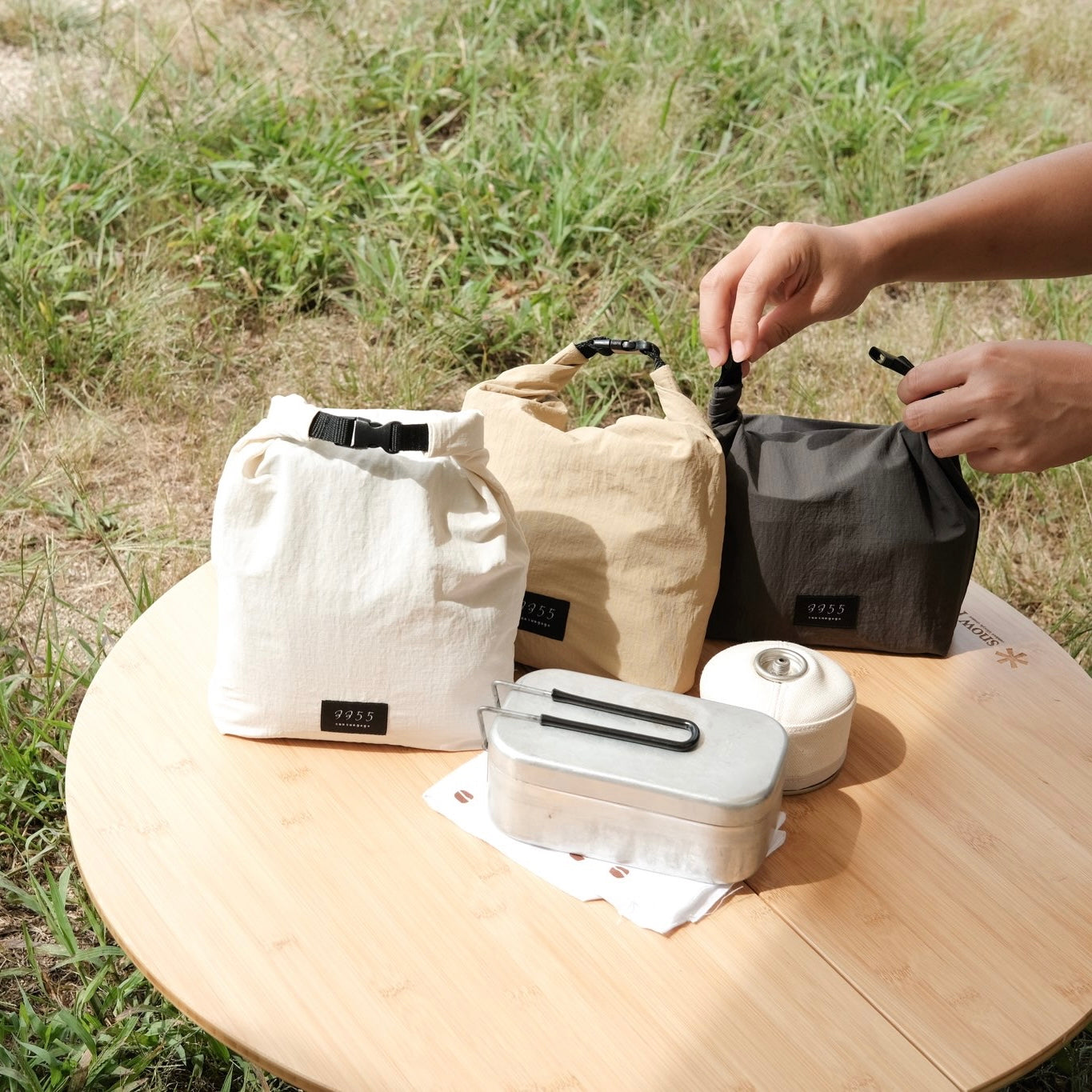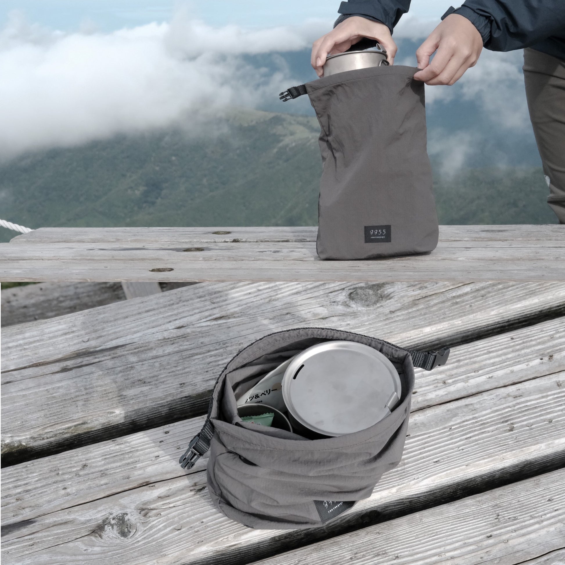 メスティンやフード、小物類を中身に合わせて ミニマムに収納できるロールトップ式
