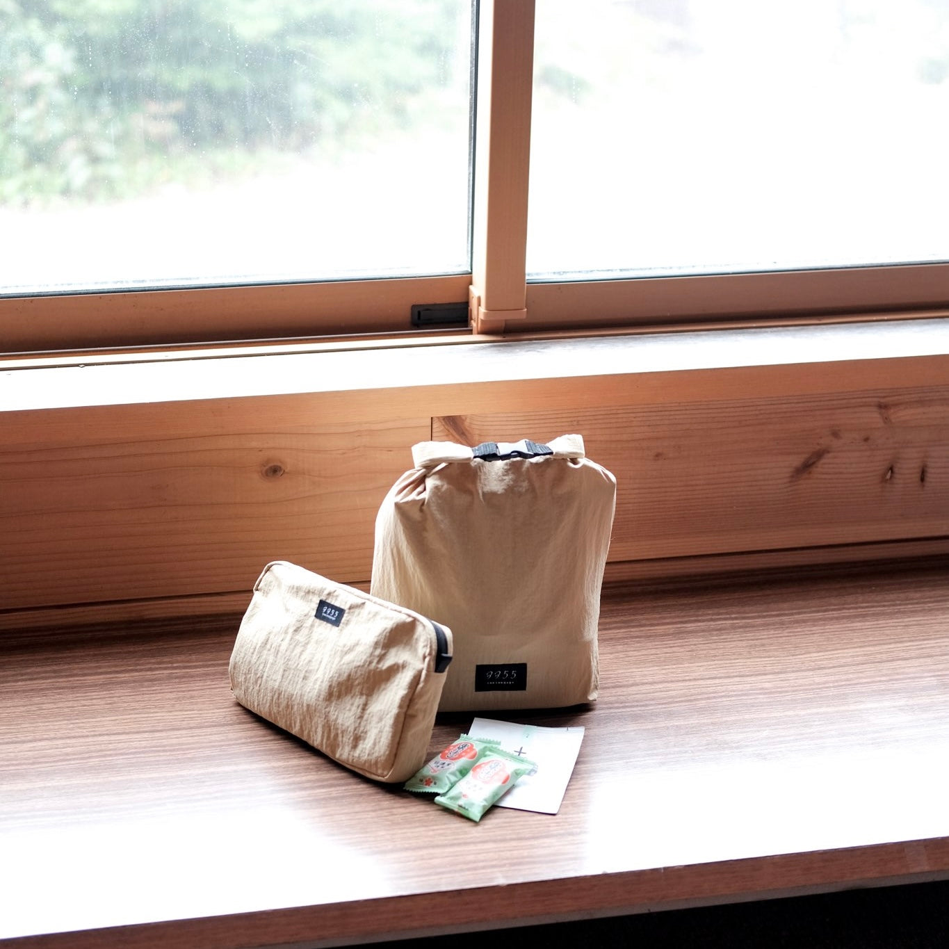 バックパックに入れやすい様、底のサイズはほぼ同じで、縦の長さを変えています。