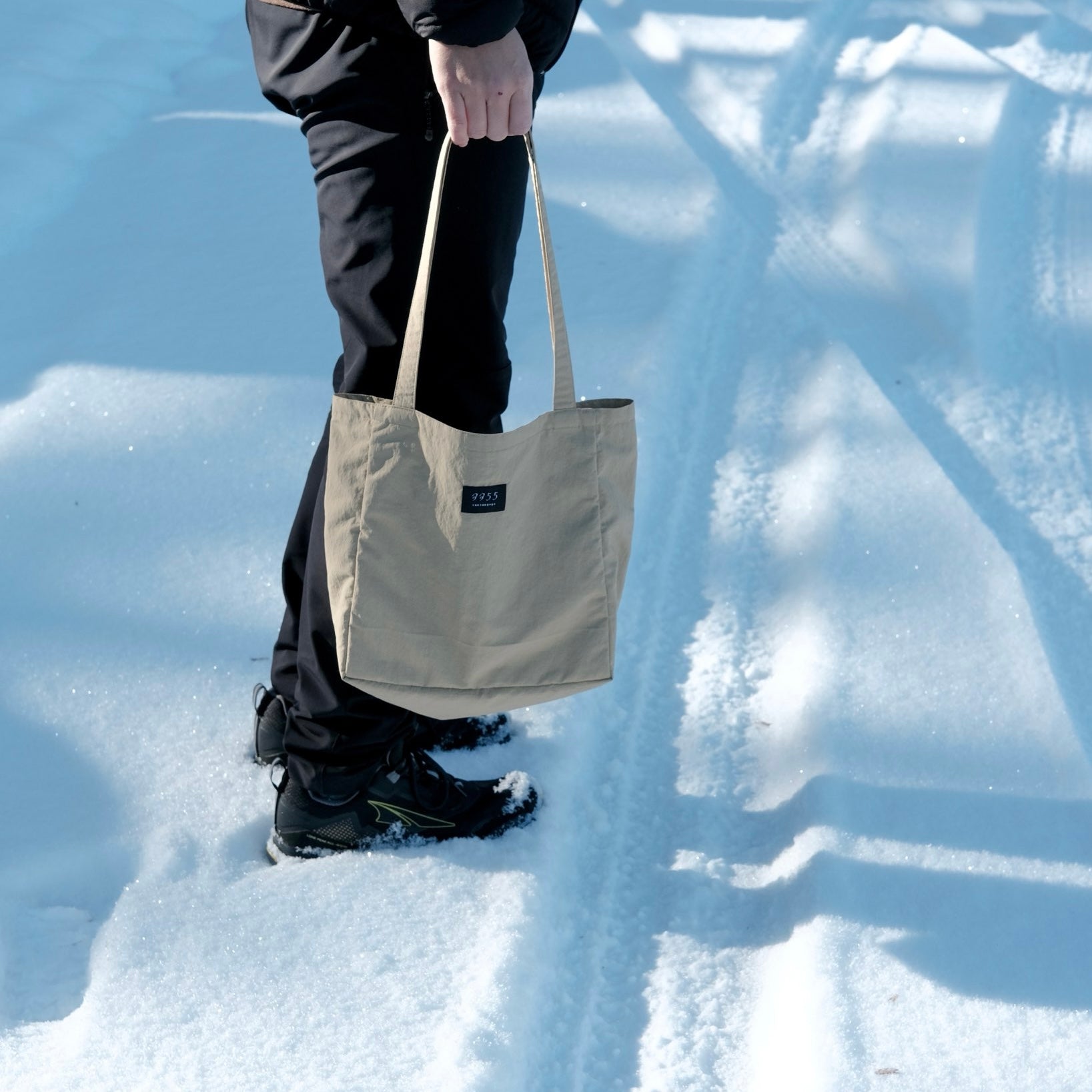 A vintage-colored tote bag, perfect for mountain trips, picnics, or everyday errands.